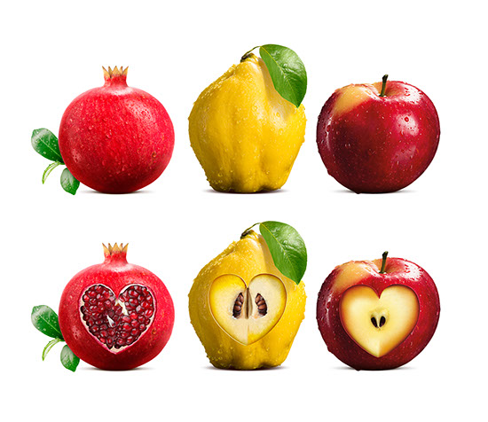 kompozycje owoców na etykiety soków jabłkowych o różnych smakach